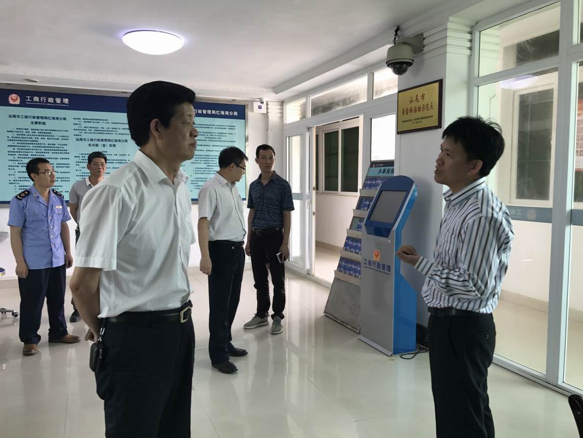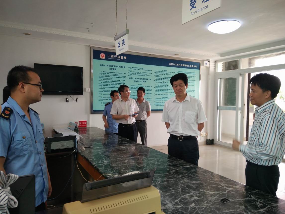 5月9日,市工商局党组书记、局长谢耿辉与党组成员、副局长叶华东率领市工商局办公室、企管科负责人深入红海湾经济开发区调研。与红海湾经济开发区党工委书记、管委会主任吴城鑫深入交换意见,并到红海湾分局调研,就深化商事登记制度改革、落实创文、创卫、2016年年报公示和安全生产等工作进行检查指导。