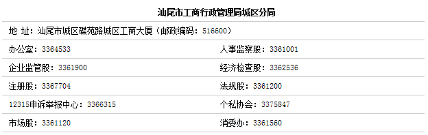 汕尾市工商行政管理局城区分局