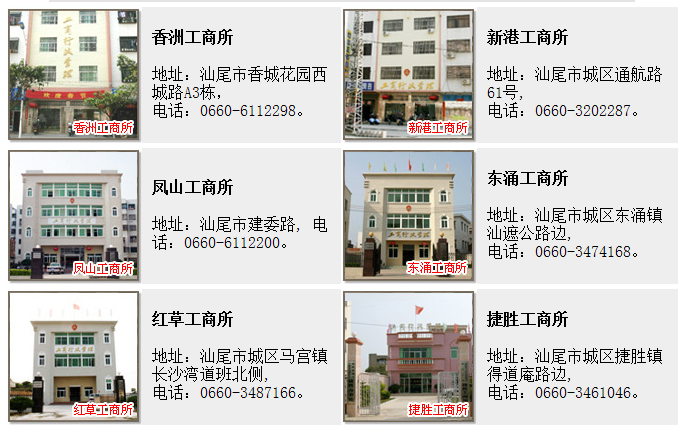 香洲工商所、新港工商所、凤山工商所、东涌工商所、红草工商所、捷胜工商所。